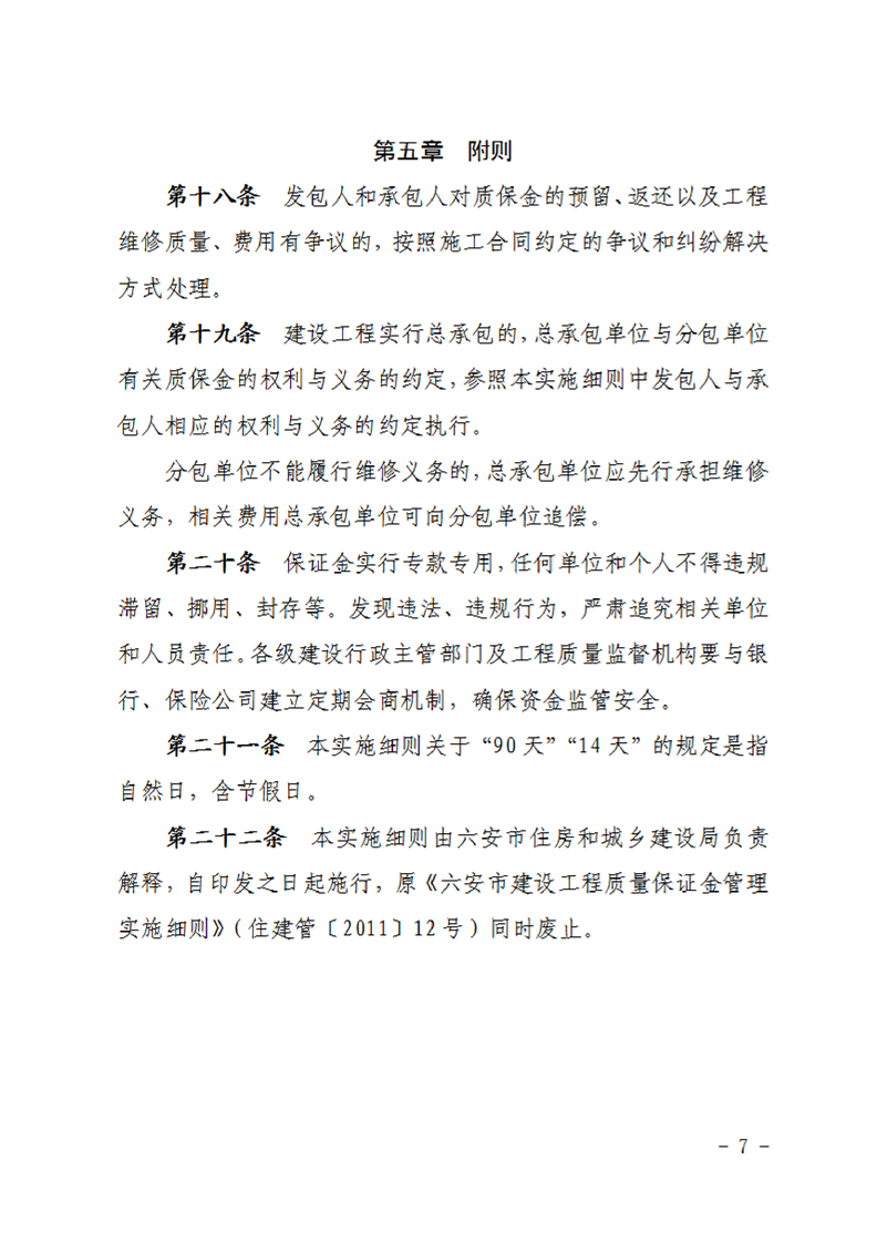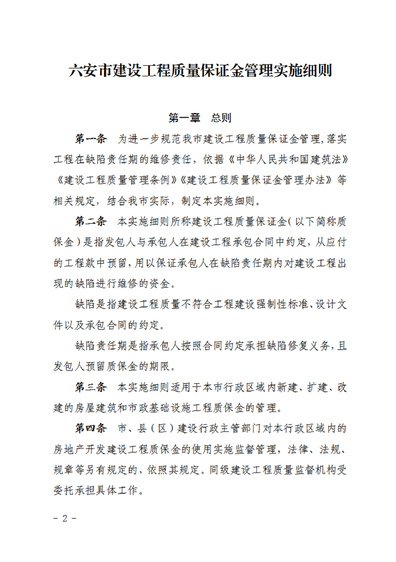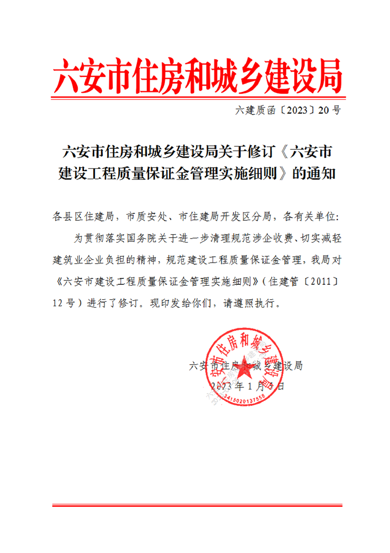 關(guān)于修訂《六安市建設(shè)工程質(zhì)量保證金管理實(shí)施細(xì)則》的通知
